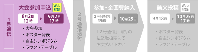 - Web申込/投稿要領 にしたがい、登録を行ってください。